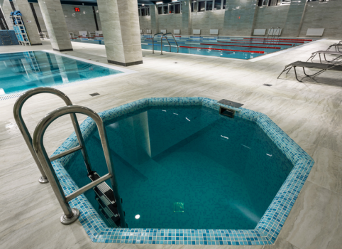 После тренировки предлагаем вам провести время с семьёй в зоне отдыха и релаксации: расслабиться в гидромассажном бассейне, погреться в хаммам или финской сауне и пообщаться, лёжа на шезлонгах у бассейна.